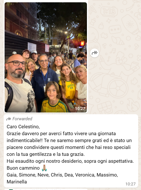 TRADUZIONE: Abbiamo trascorso un meraviglioso soggiorno in sua compagnia. È riuscito a farci scoprire questa città meravigliosa al nostro ritmo, in tutta sicurezza, con molta premura, gentilezza e professionalità.
